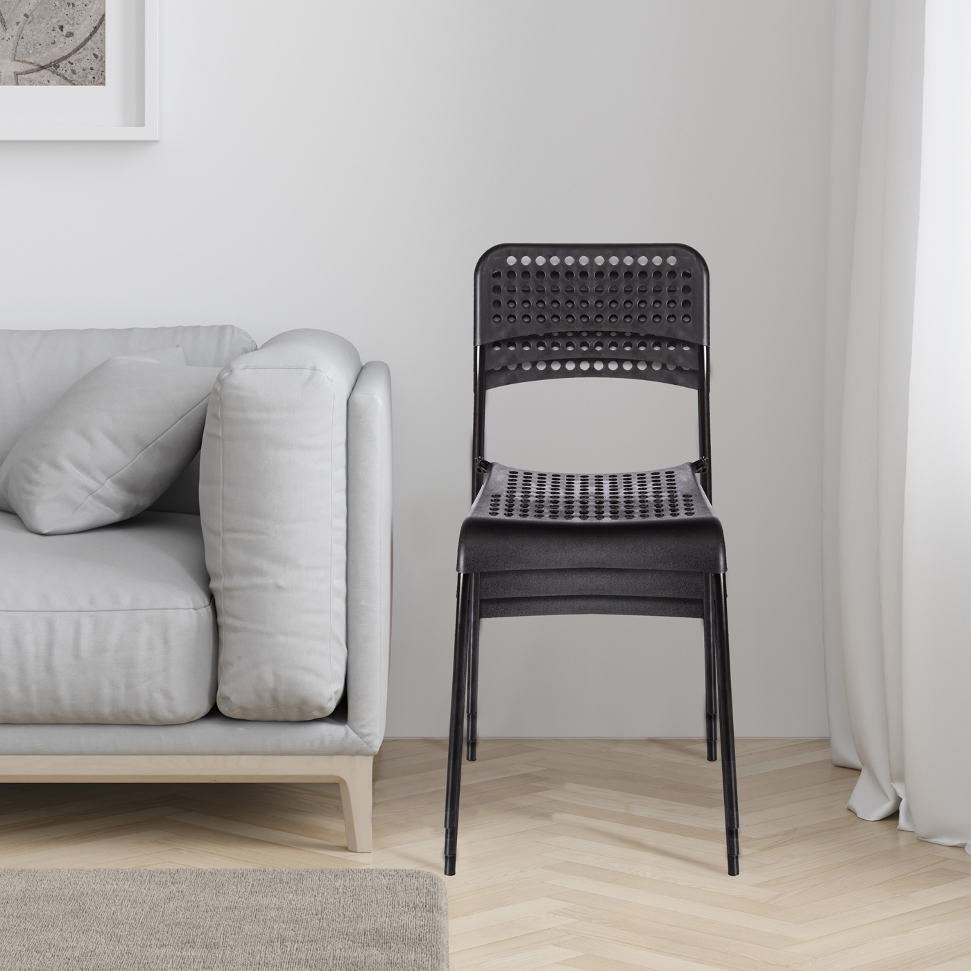 Предмет мебели для сидения одного человека, с опорой для спины. Сидение размером 39*47 см. Стул выполнен в белом/чёрном цвете из стойкого к истиранию пластика и металла. Ножки стула выполнены из металла, каркас стула скрепляется между собой крепежными элементами, входящими в комплектацию. Наличие на ножках подпятников позволяет избежать повреждений напольного покрытия при эксплуатации стула. Минималистичный дизайн стула с лёгкостью впишется практически в любой интерьер и станет отличным дополнением для кухни, гостиной, прихожей, кабинета или загородного дома. Белый и черный цвет изделия подойдут для любого интерьера.